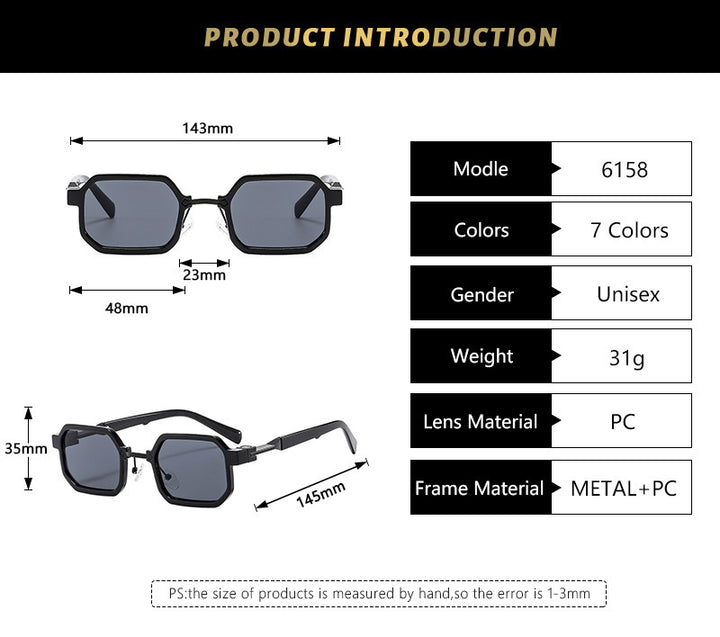 Elevate your street style with NOIR. – SQUARE FLEX VISION, the ultimate blend of vintage hip-hop attitude and modern UV protection. Designed for those who live to stand out, these bold small-frame sunglasses fuse edgy fashion with essential functionality—perfect for travel, parties, or the everyday runway of life.